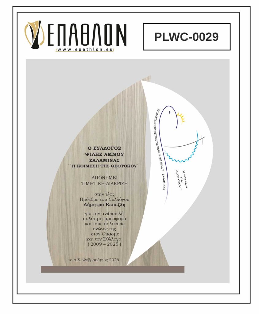 Στις 22-02-2026 στην εορταστική εκδήλωση του συλλόγου για τις Απόκριες δόθηκε με ομόφωνη απόφαση του Δ.Σ. πλακέτα τιμητικής διάκρισης από την Αντιπρόεδρο του συλλόγου κα Μαρία Σελεμενάκη – Μπακαούκα στην Τέως Πρόεδρο του συλλόγου κα Δήμητρα Κεπεζλή.